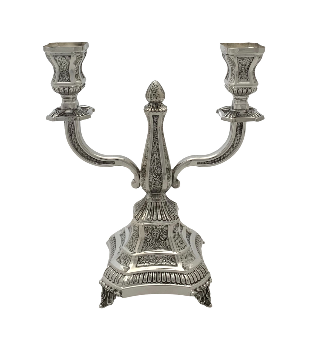 925 STERLING SILVER HANDMADE CHASED SWIRL ORNATE MATTE SHINY 2 LIGHT CANDELABRA