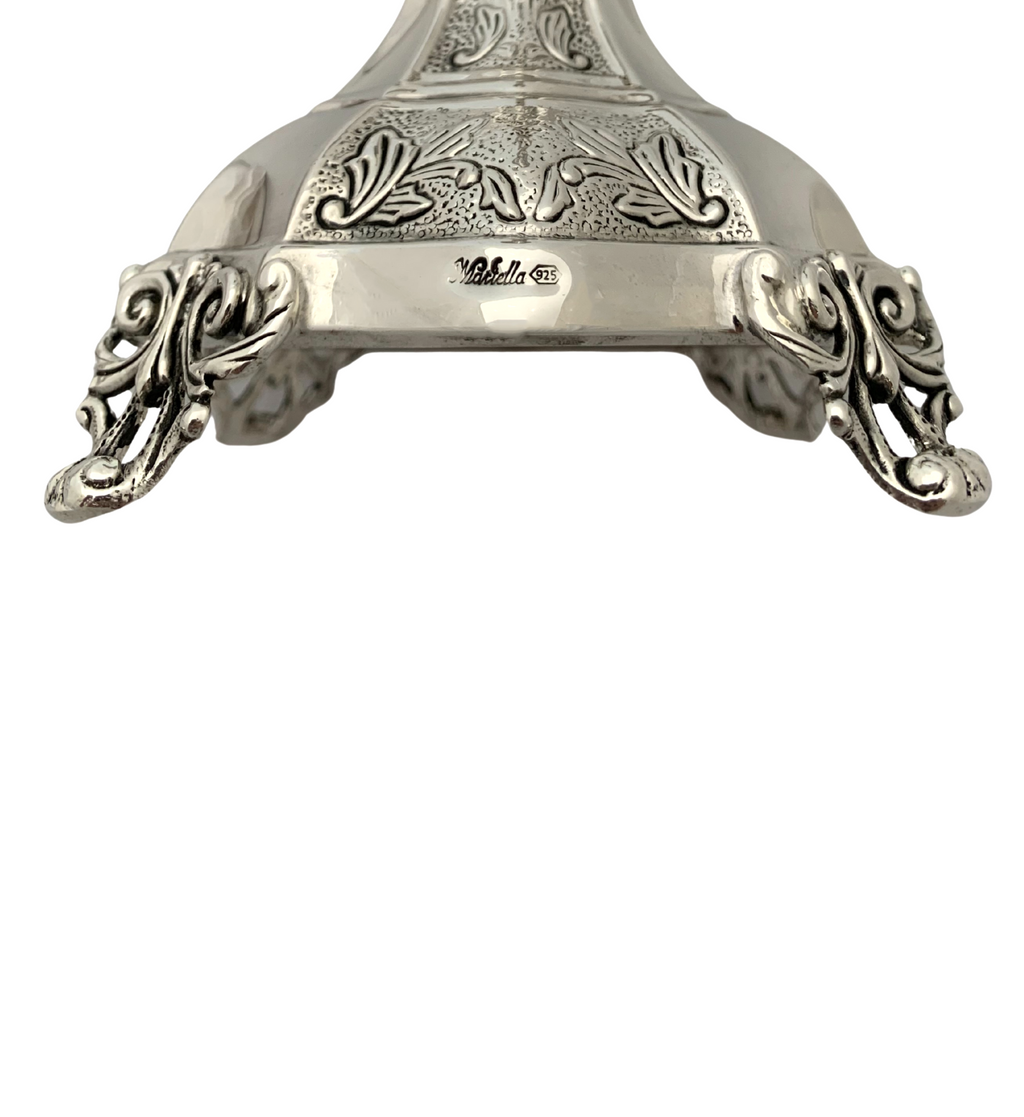 925 STERLING SILVER HANDMADE CHASED SWIRL ORNATE MATTE SHINY 2 LIGHT CANDELABRA