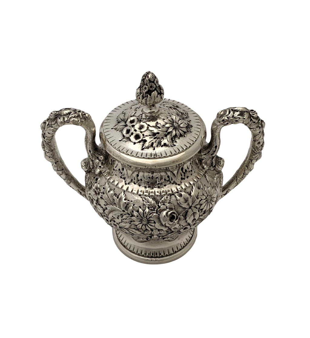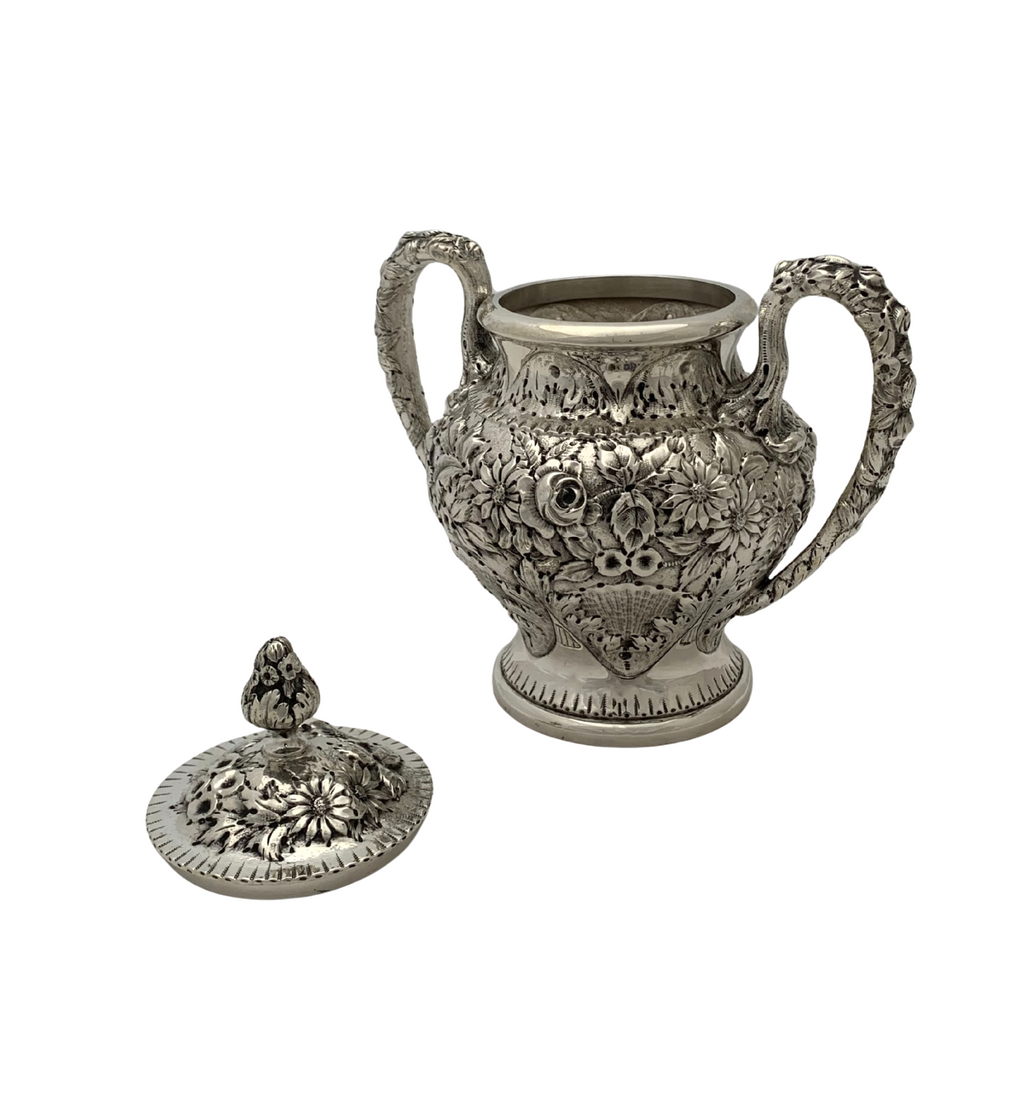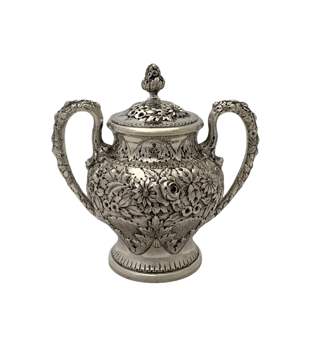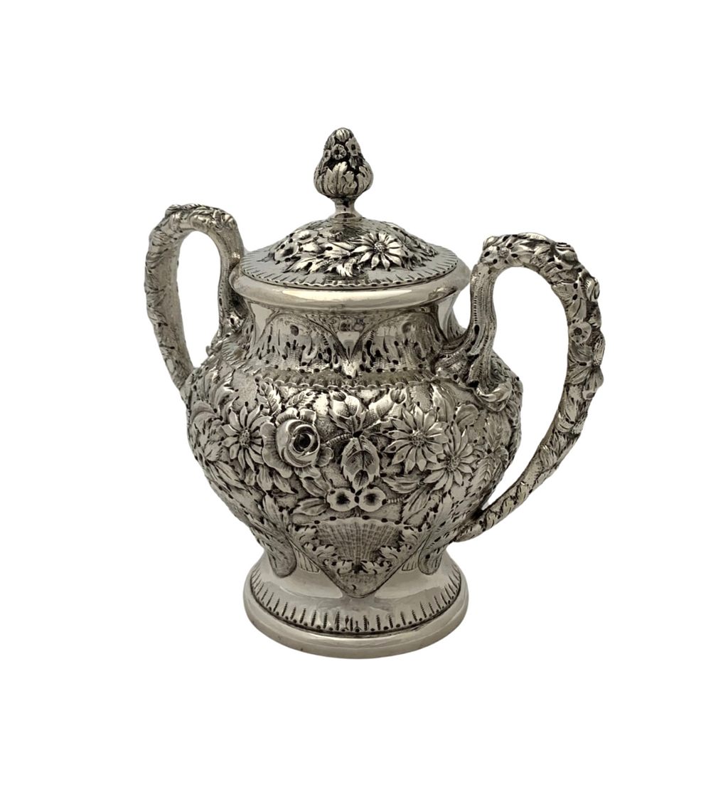 ANTIQUE S. KIRK & SON 925 STERLING SILVER HANDMADE FLORAL REPOUSSE HONEY DISH