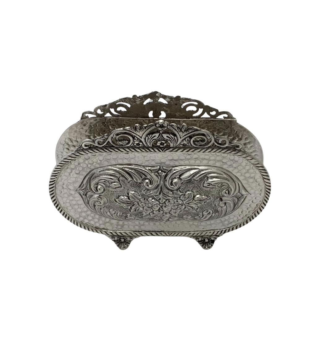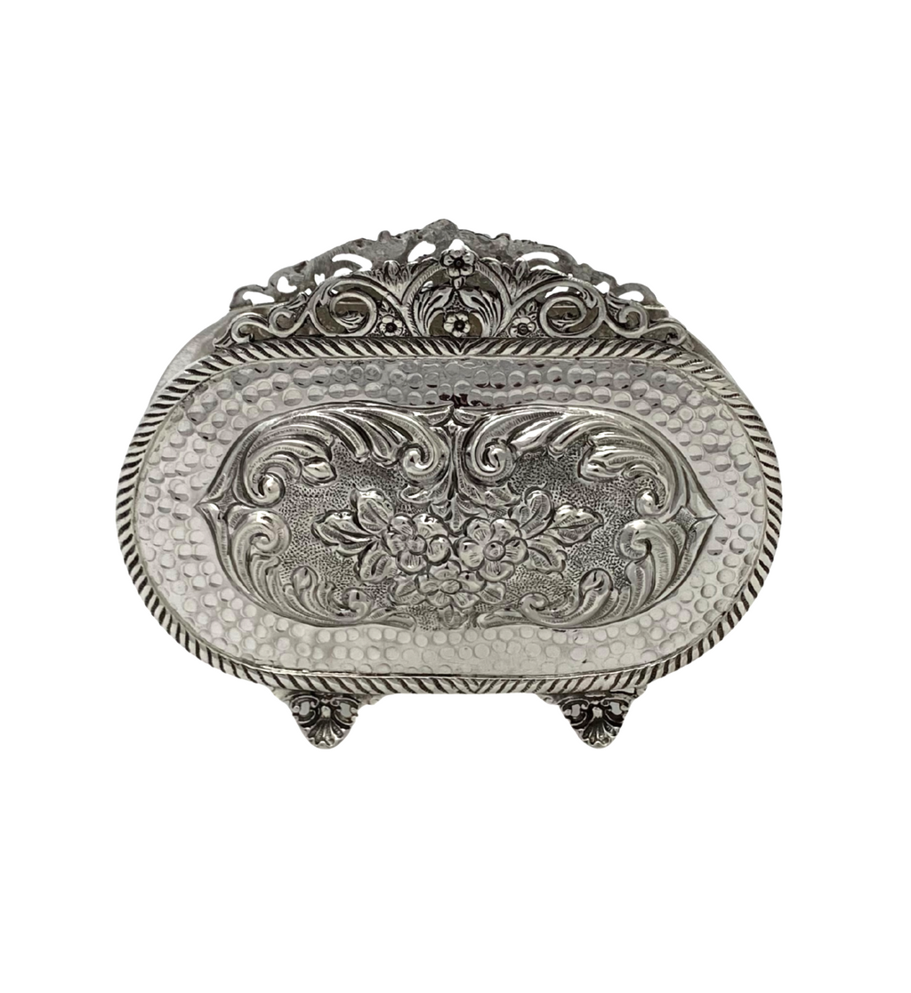 FINE 925 STERLING SILVER HANDMADE FLORAL CHASED ORNATE HAMMERED NAPKIN HOLDER