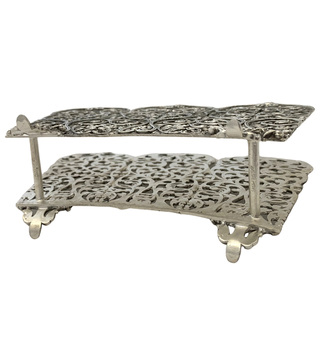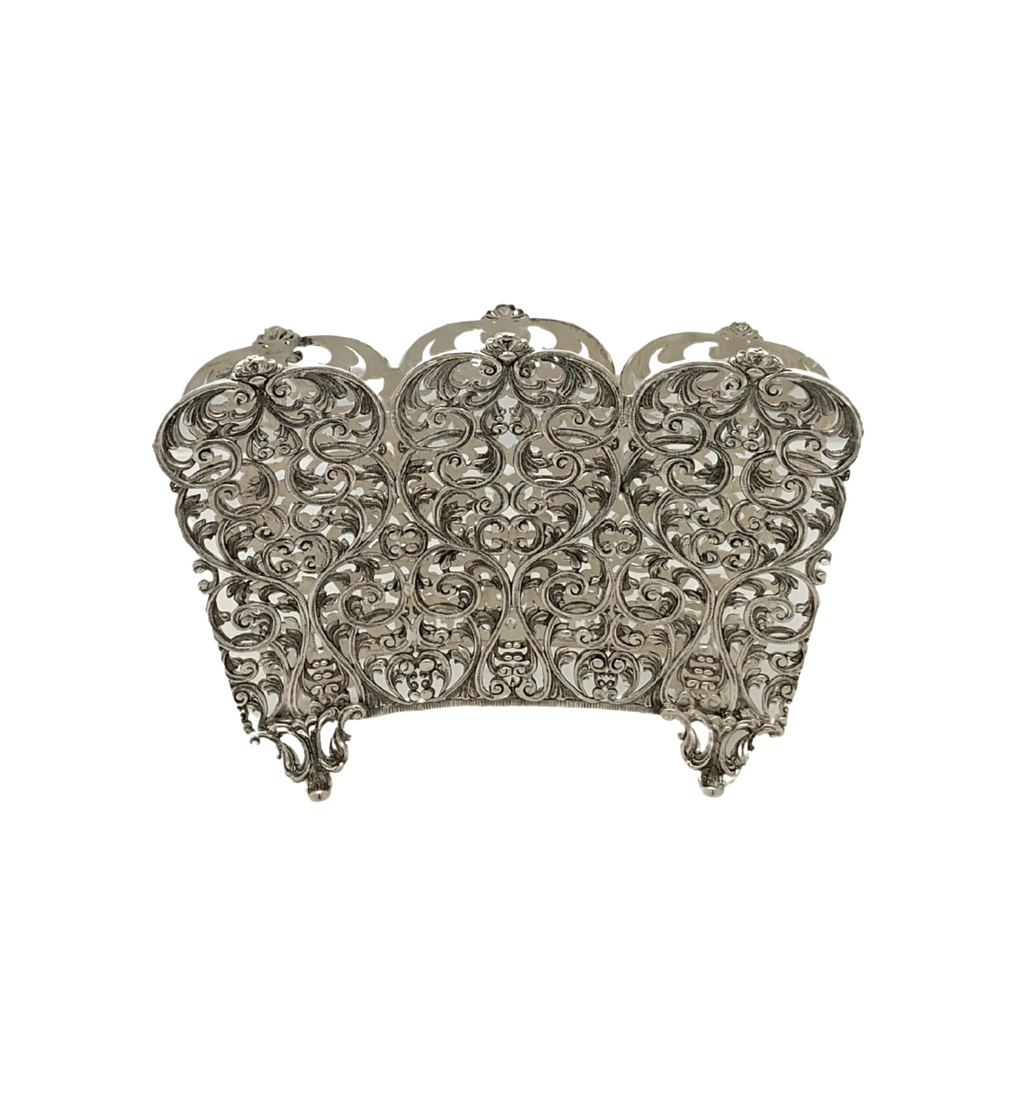FINE 925 STERLING SILVER HANDMADE PIERCED FLORAL LEAF ORNATE SWIRL NAPKIN HOLDER