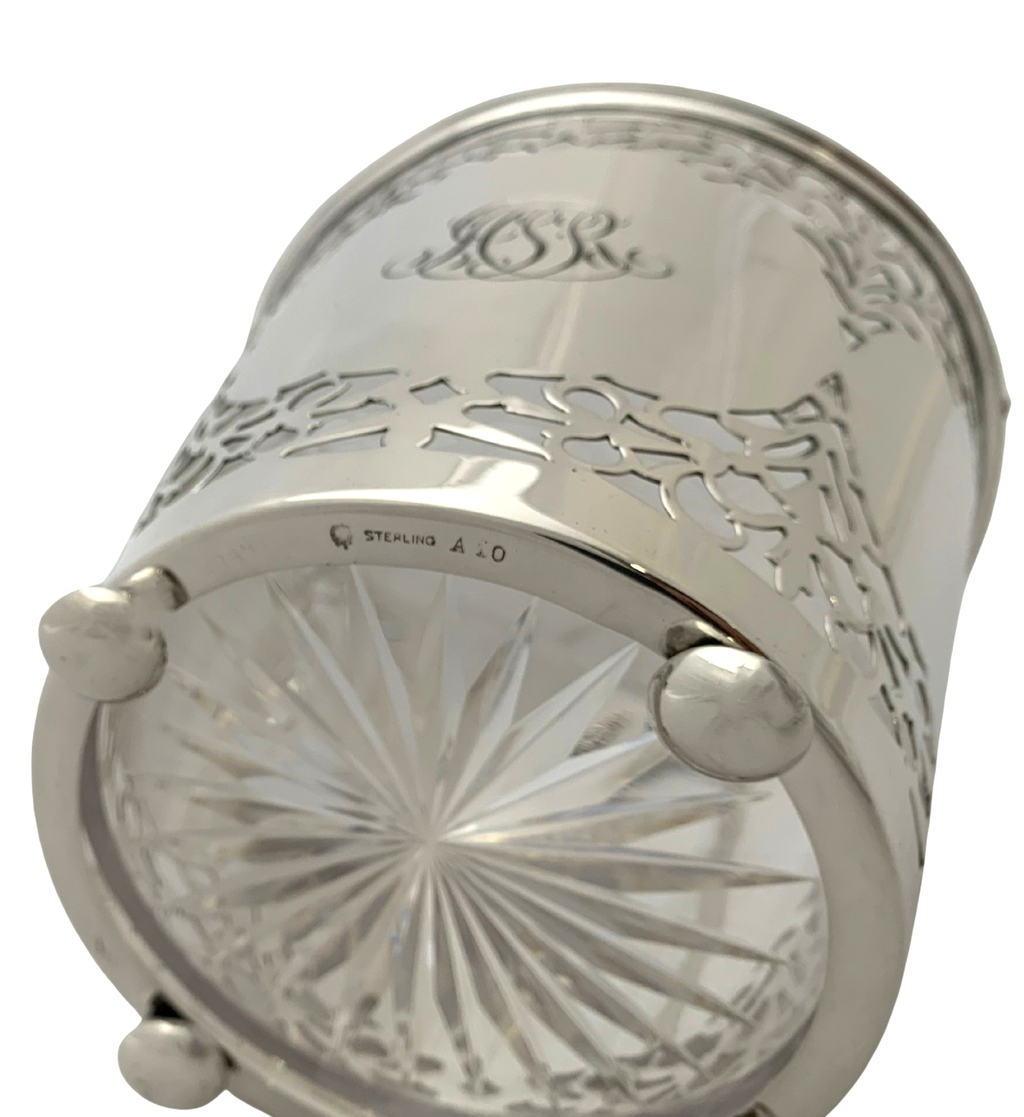 Fine Antique 925 Sterling Silver & Glass Insert Ice Bucket with Handle.