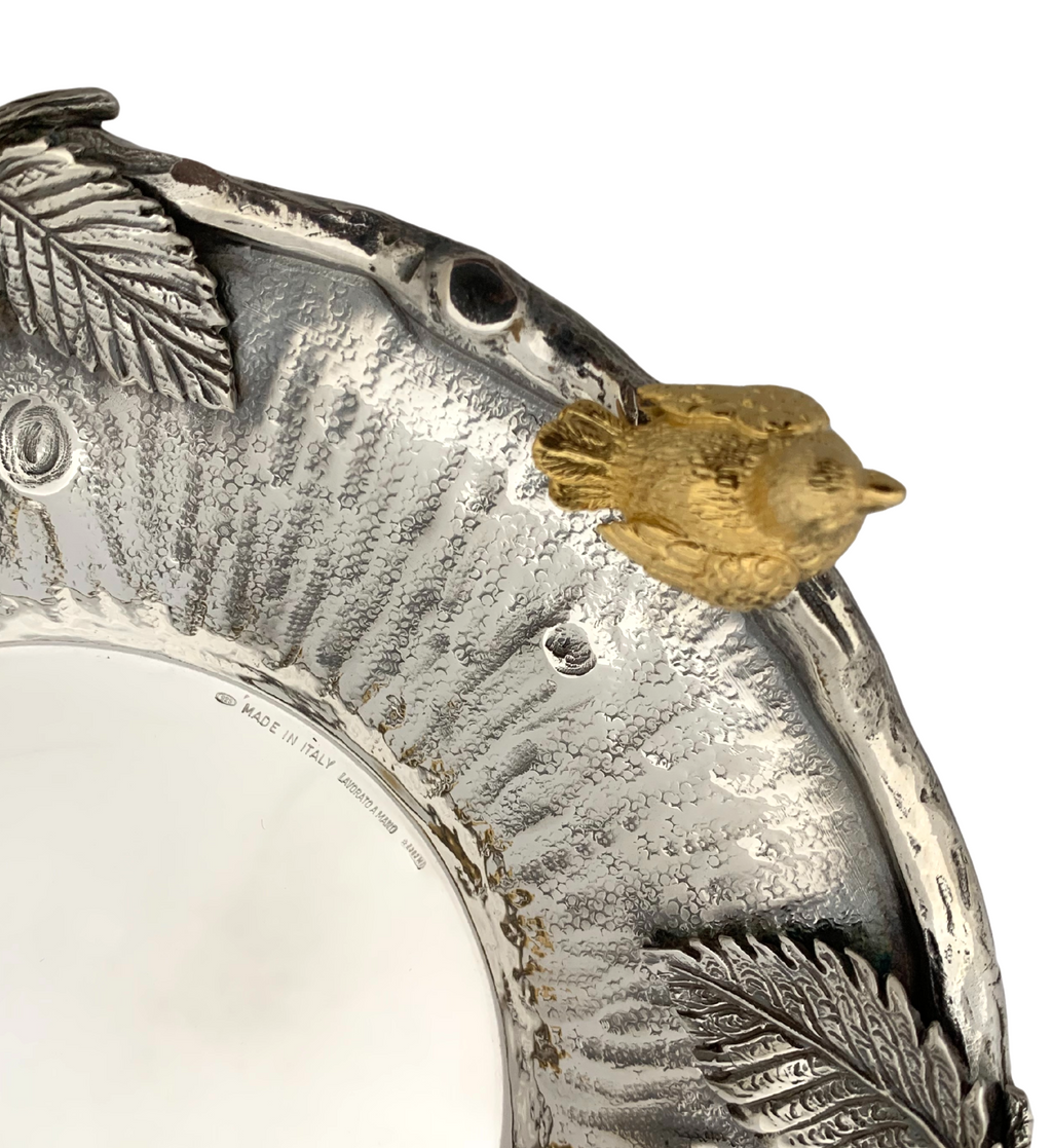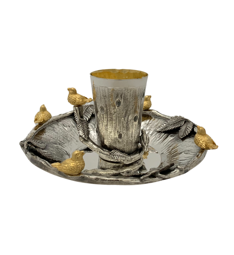925 STERLING SILVER & GILDED HANDMADE MULTI BIRD & LEAF APPLIQUE TREE CUP & TRAY