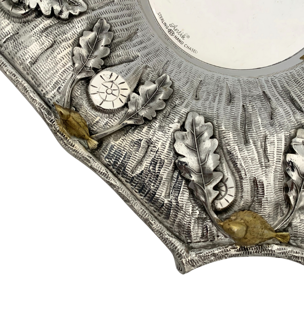 925 STERLING SILVER & GILDED HANDMADE MULTI BIRD & LEAF APPLIQUE TREE CUP & TRAY