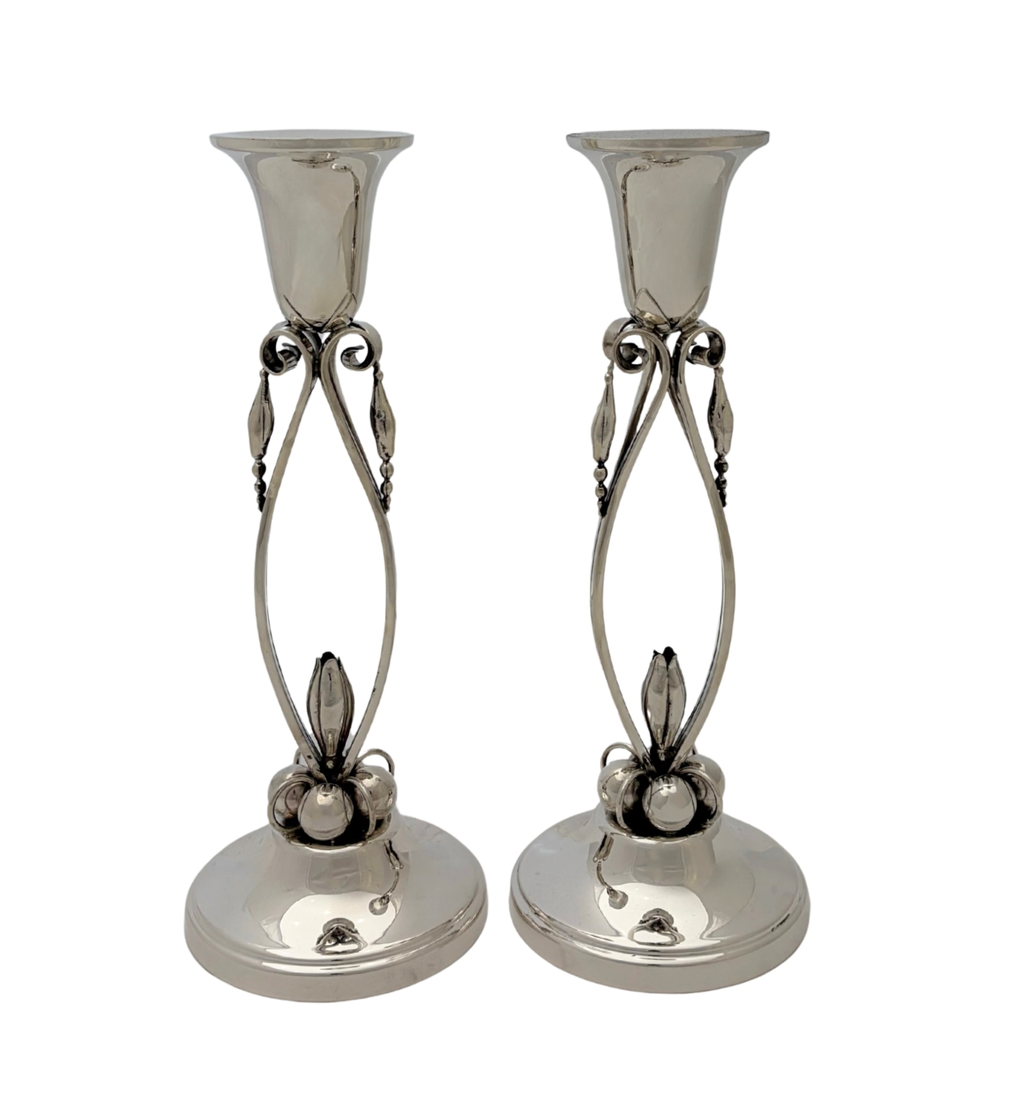 ANTIQUE ALPHONSE LA PAGLIA 925 STERLING SILVER HANDMADE TULIP CANDLESTICKS
