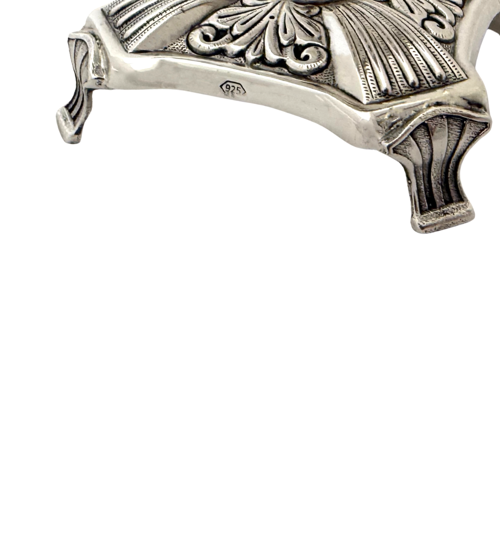 Fine 925 Sterling Silver & Glass Insert Single Salt Holder on Stand.