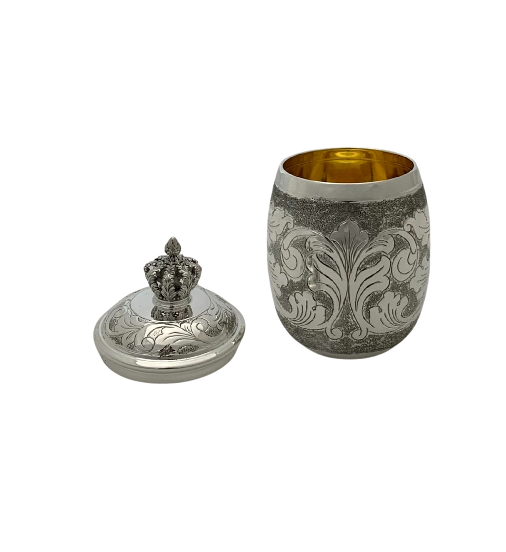 Fine 925 Sterling Silver Cup & Tray & Crown Cover.