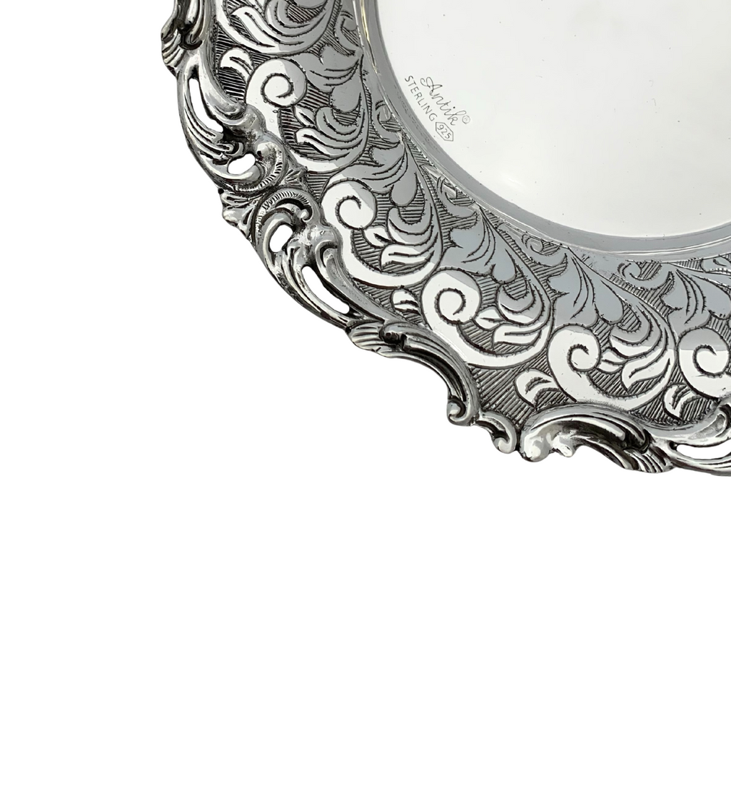 FINE 925 STERLING SILVER HANDMADE CHASED SWIRL ORNATE STRIATED SLEEK CUP & TRAY