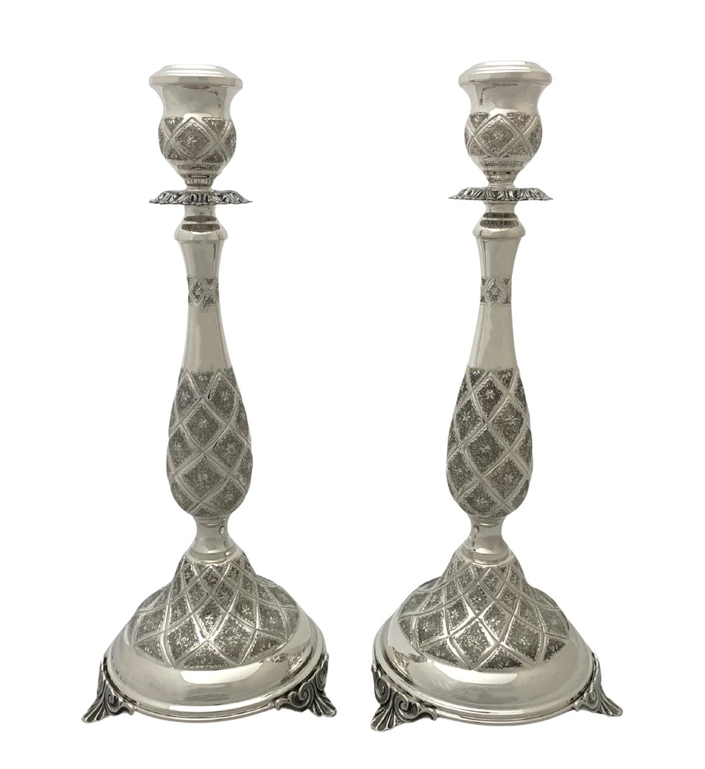 FINE 925 STERLING SILVER HANDMADE DIAMOND CUT SLEEK ORNATE ROUND CANDLESTICKS