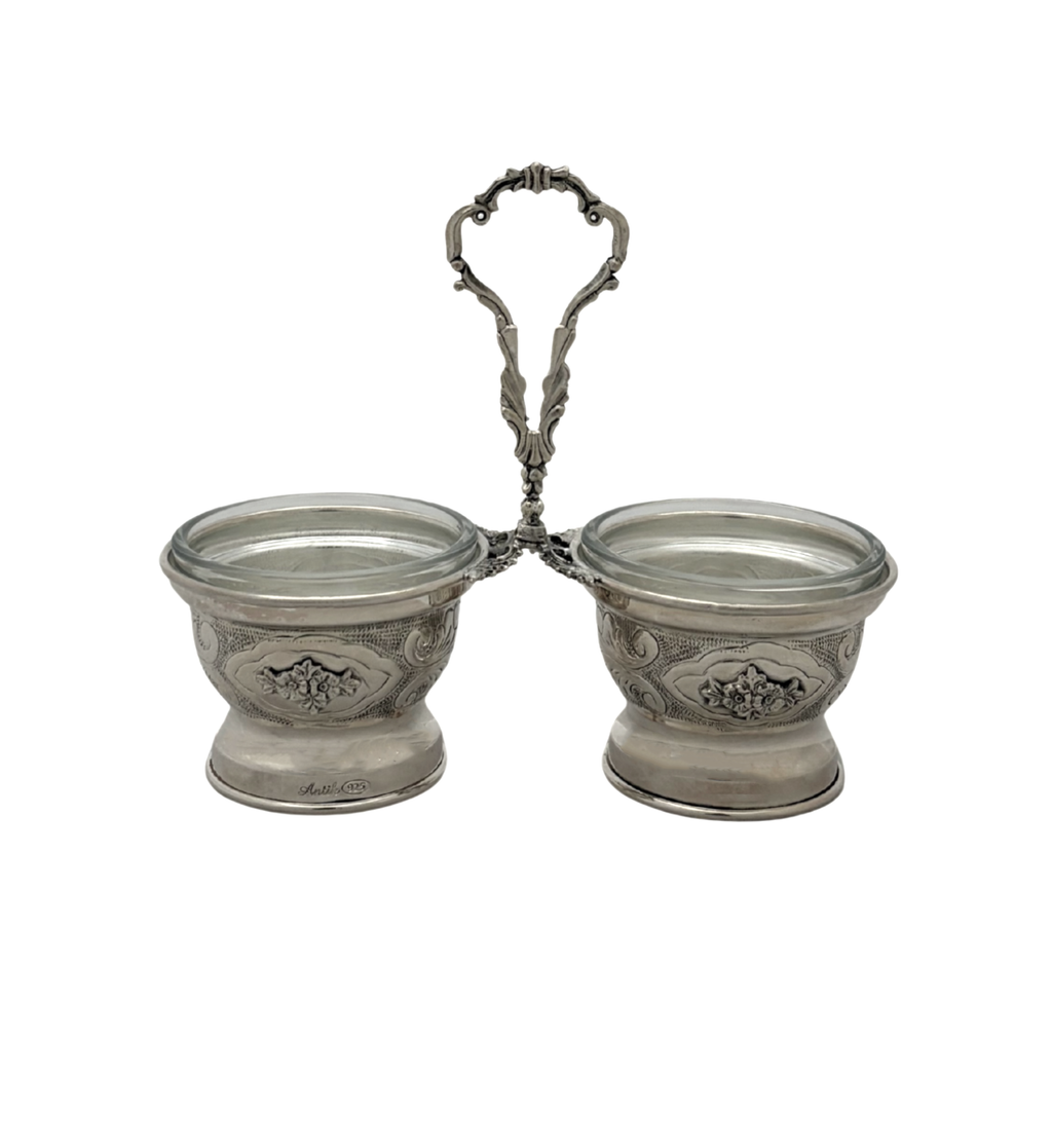 Fine 925 Sterling Silver Double Salt Holder.