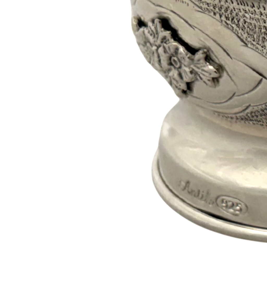 FINE 925 STERLING SILVER HANDMADE FLORAL CHASED SWIRL ORNATE DOUBLE SALT HOLDER