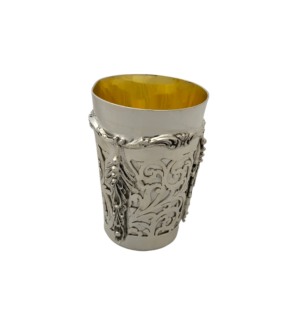 Featuring handmade fluted open swirl chased leaf applique ornate designs, shiny sleek finish.