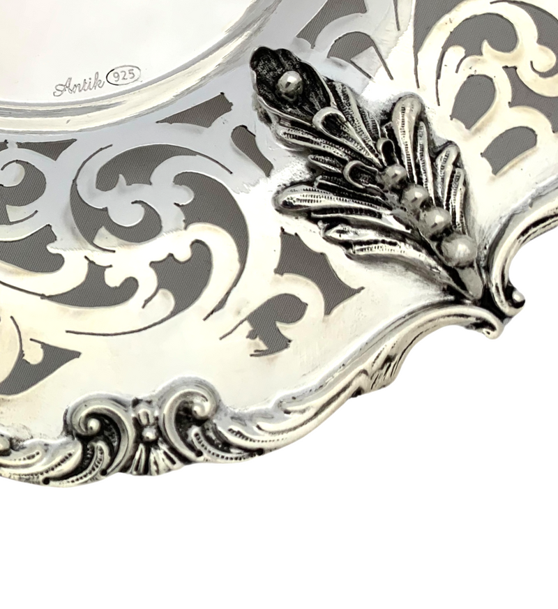 FINE 925 STERLING SILVER HANDMADE FLUTED OPEN SWIRL LEAF APPLIQUE CUP & TRAY