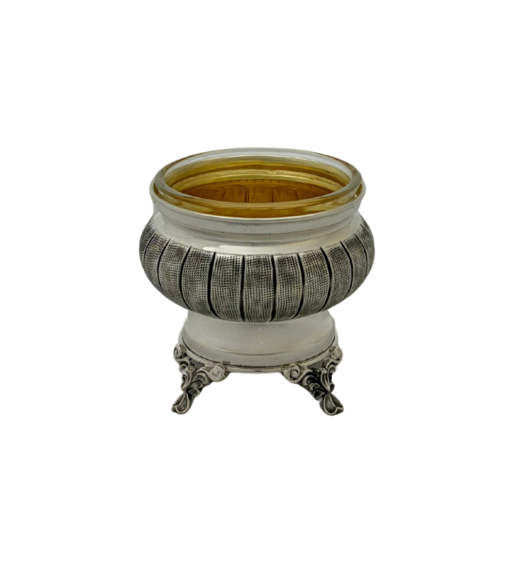 FINE 925 STERLING SILVER HANDMADE STRIATED SHINY SLEEK FINISH ORNATE SALT HOLDER