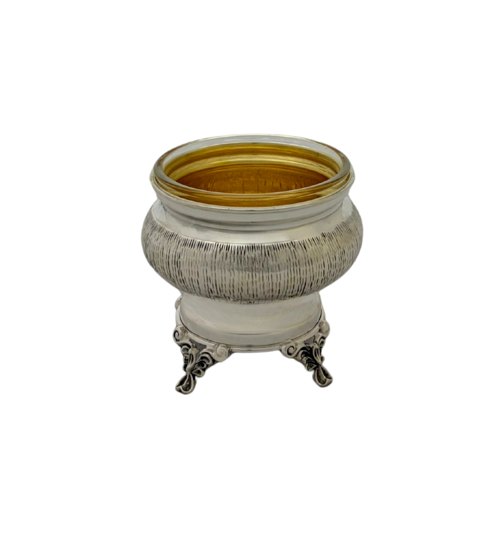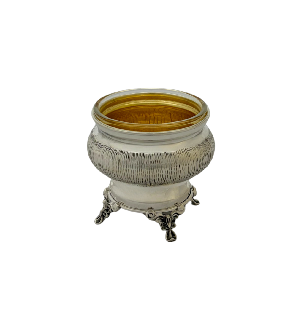 Fine 925 Sterling Silver & Glass Insert Salt Holder.