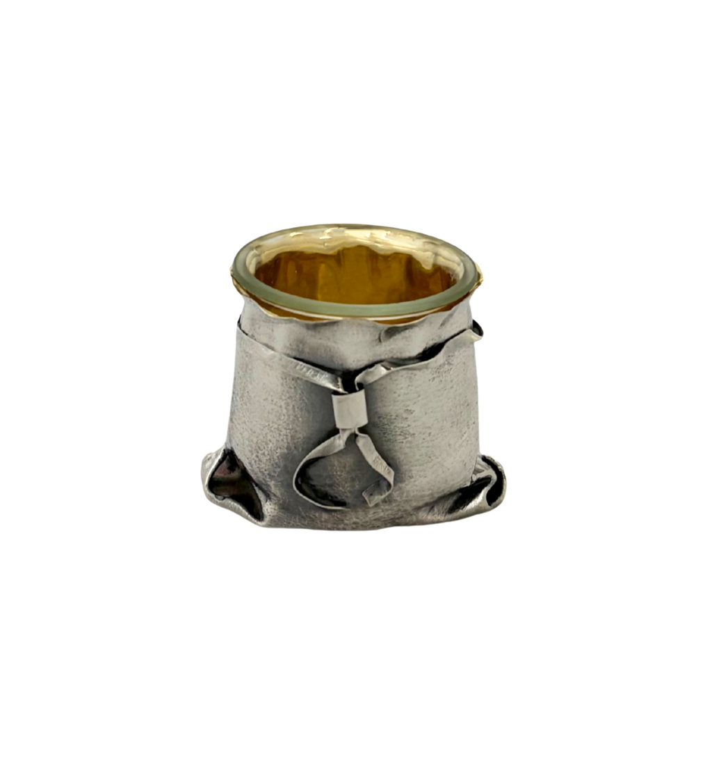 FINE ITALY 925 STERLING SILVER HANDMADE GIFT BAG DESIGN MATTE SINGLE SALT HOLDER